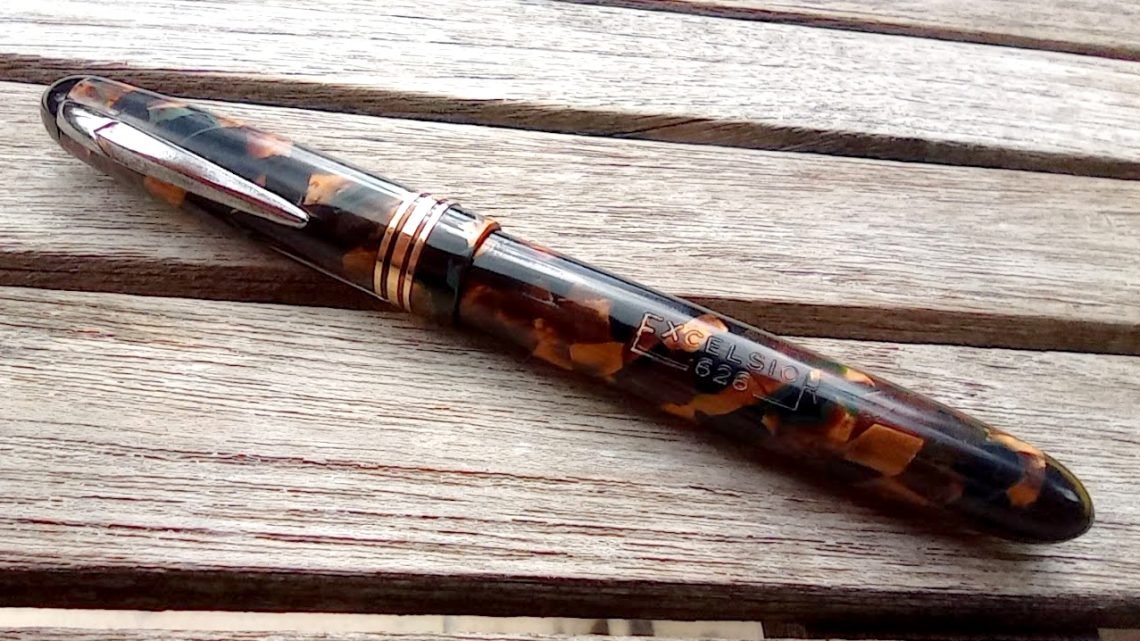 – Corps Celluloïd marbré. Il est gravé dans la résine : « EXCELSIOR 626 » stylisé.