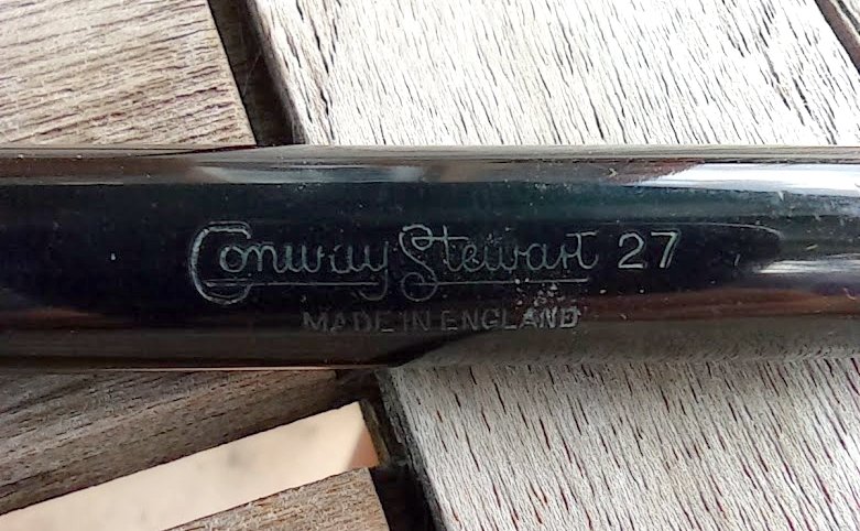 – Corps Celluloïd Noir. Gravé « CONWAY STEWART 27 – MADE IN ENGLAND «