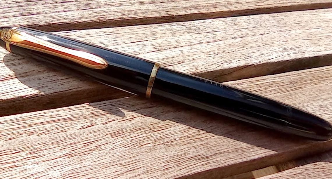 – Capuchon (intact) Celluloïd (?) noir, clip doré avec gravure GEHA en haut. Bague dorée.