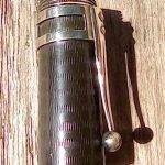– Capuchon en Ébonite noire. Motif à chevrons. Clip métal en argent avec poinçons. Très Bon état global.
