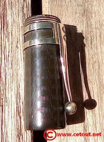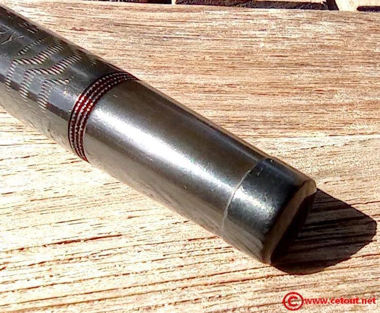 – Capuchon en Ébonite noire. Motif à chevrons. Clip métal en argent avec poinçons. Très Bon état global.