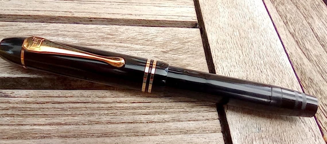 – Capuchon (intact) Celluloïd(?) noir, clip doré avec gravure GREIF en haut. Doubles bagues dorées.