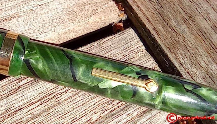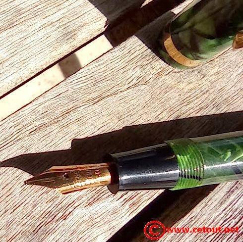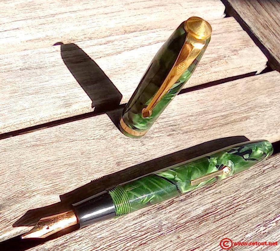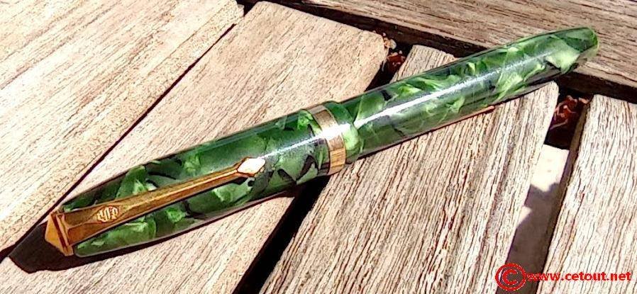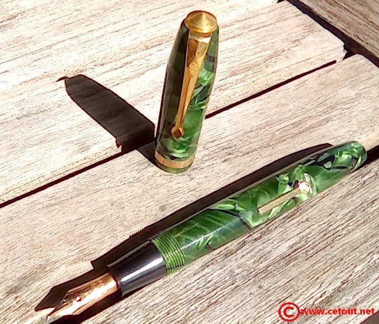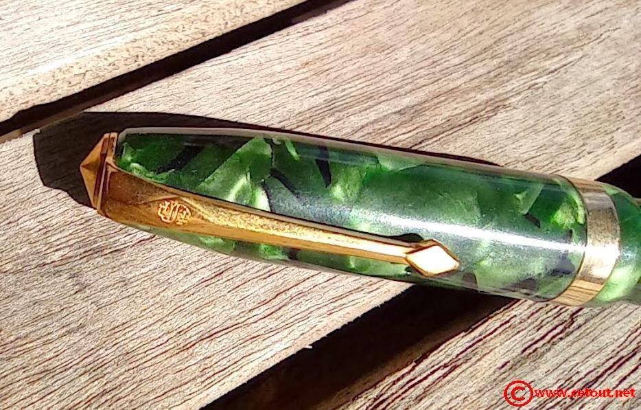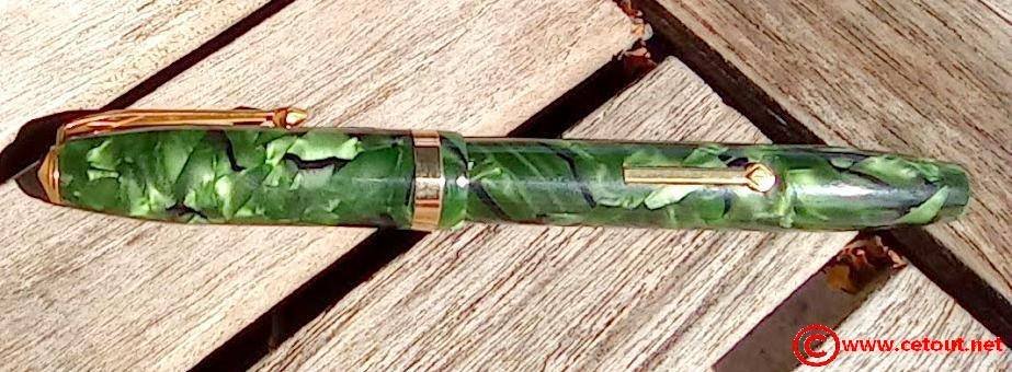 – Capuchon (intact) Celluloïd Marbré Vert avec clip et bague dorés