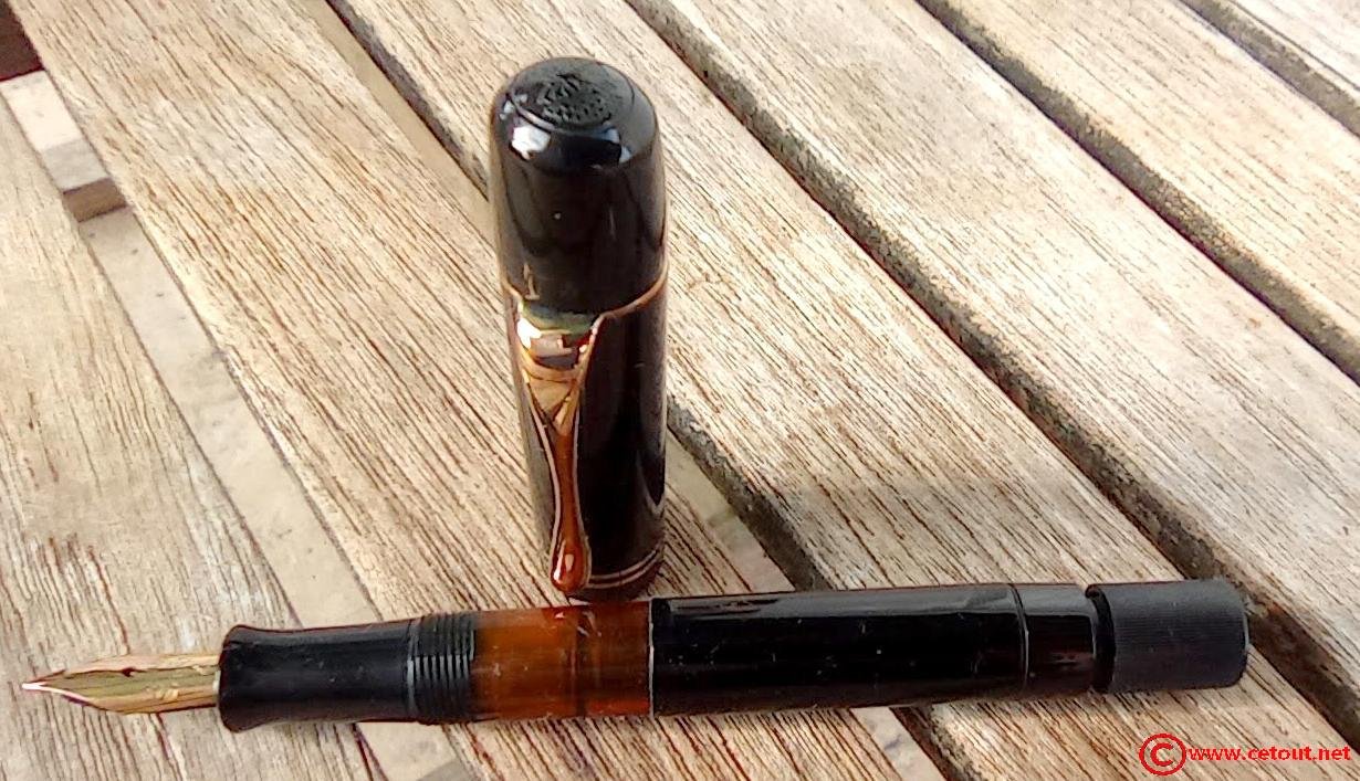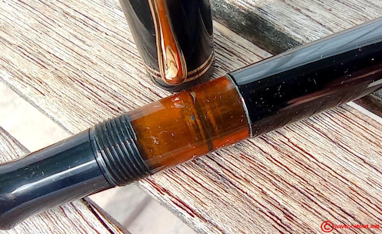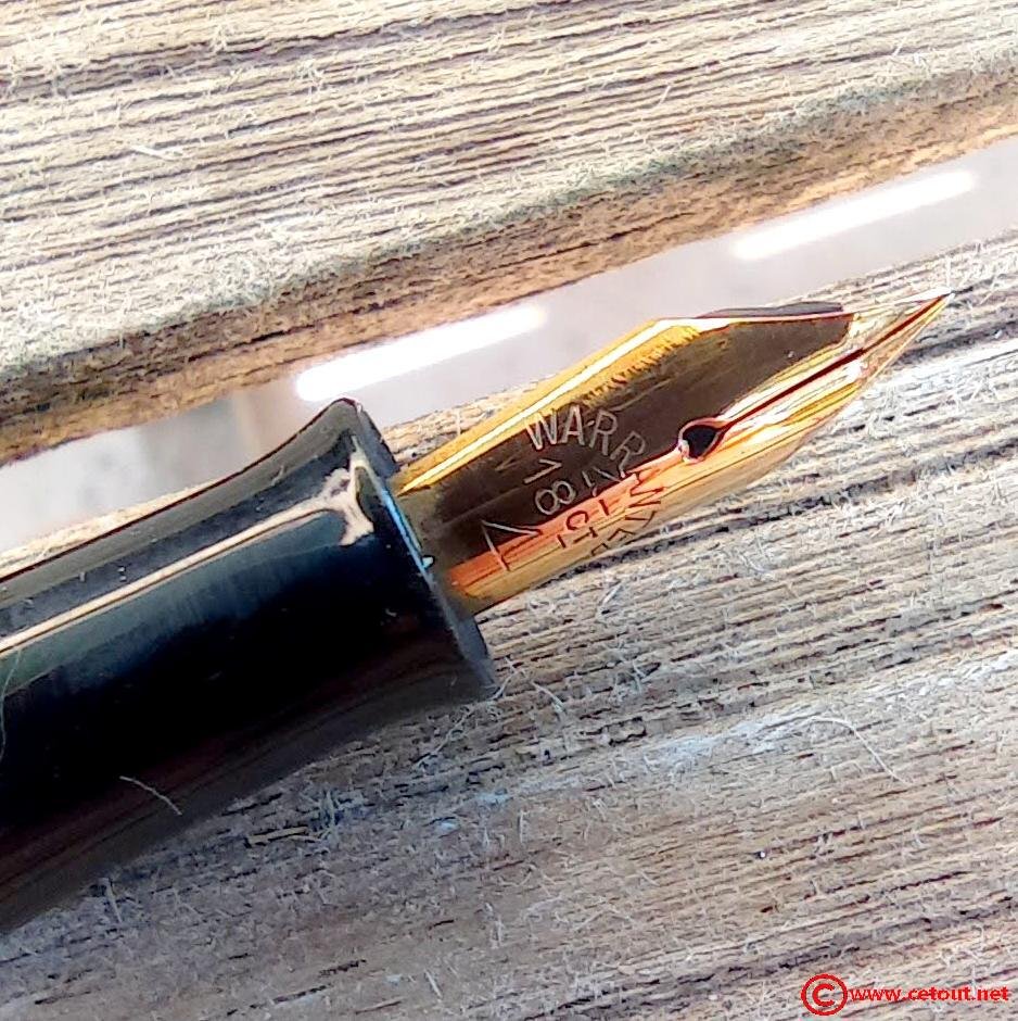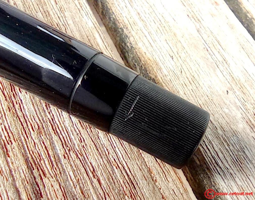 – Bloc plume celluloïd noir : Plume non originale en or gravée « WARRANTED 18CT » et « 4 » dessous