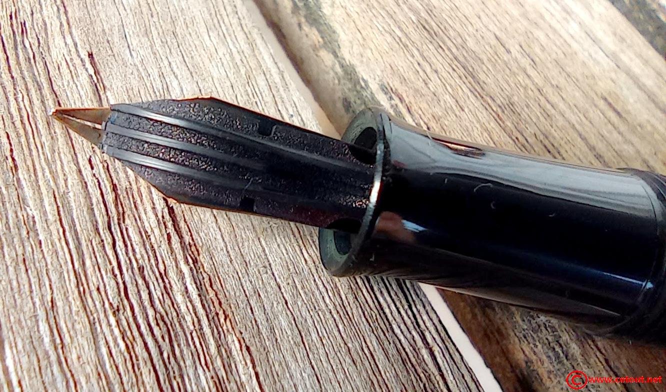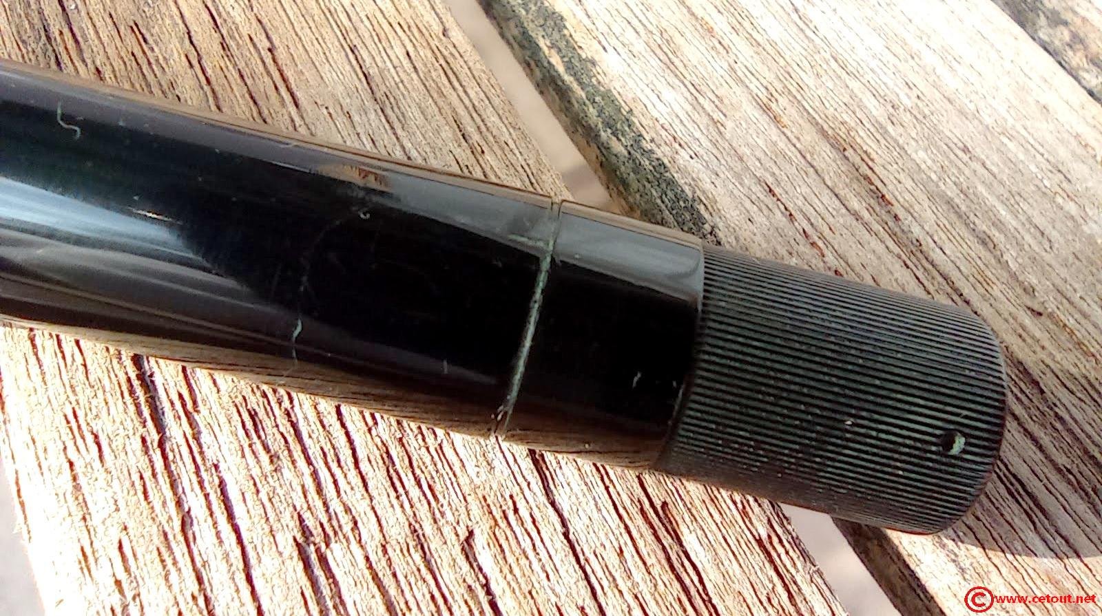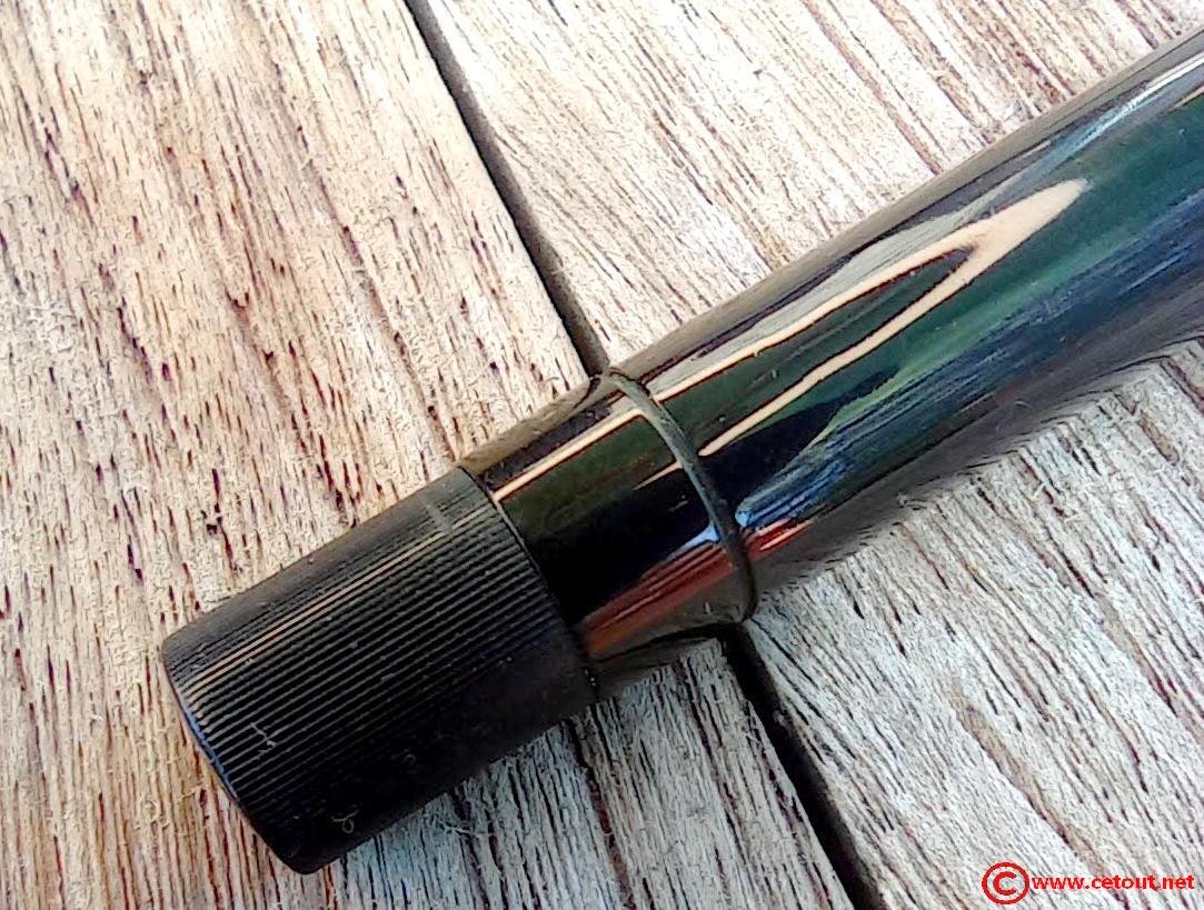 – Bloc plume celluloïd noir : Plume non originale en or gravée « WARRANTED 18CT » et « 4 » dessous