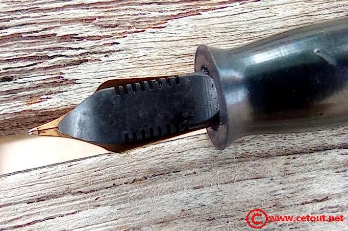 Corps noir (celluloid?) avec résille métal doré (filigree).