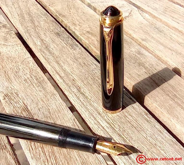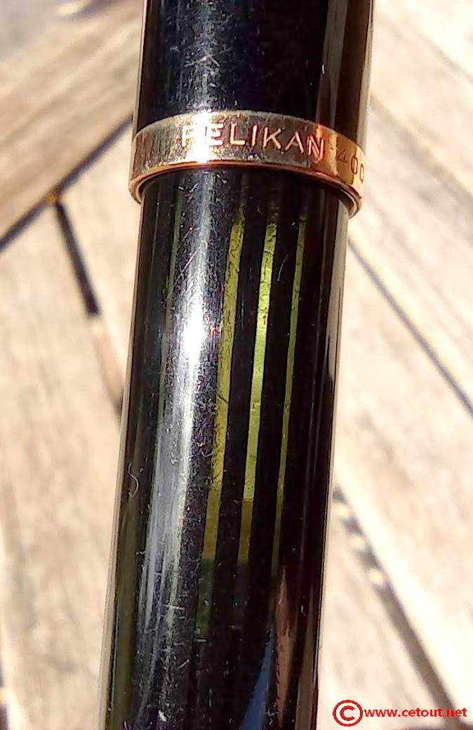 Base du capuchon avec 1 anneau doré. Inscription : « PELIKAN 400 GERMANY »
