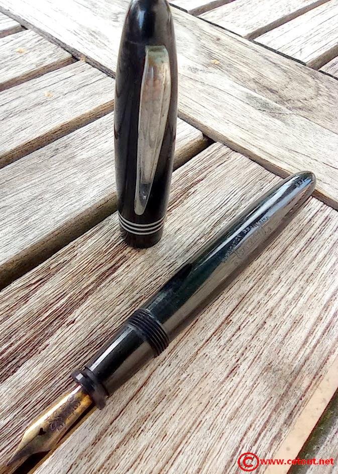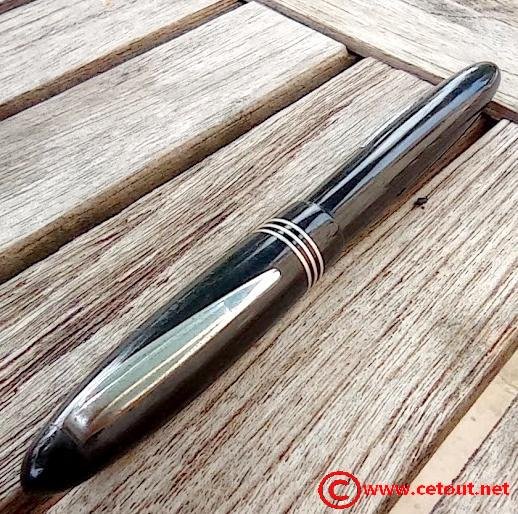 – Capuchon en celuloid(?) noire. 3 bagues métal dorées. Bon état global.