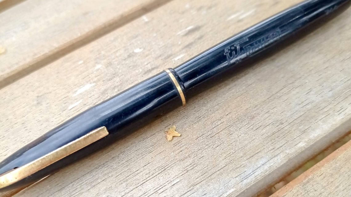 – Bloc plume en celluloïd(?) noire. Plume OR. Inscriptions : logo caractéristique