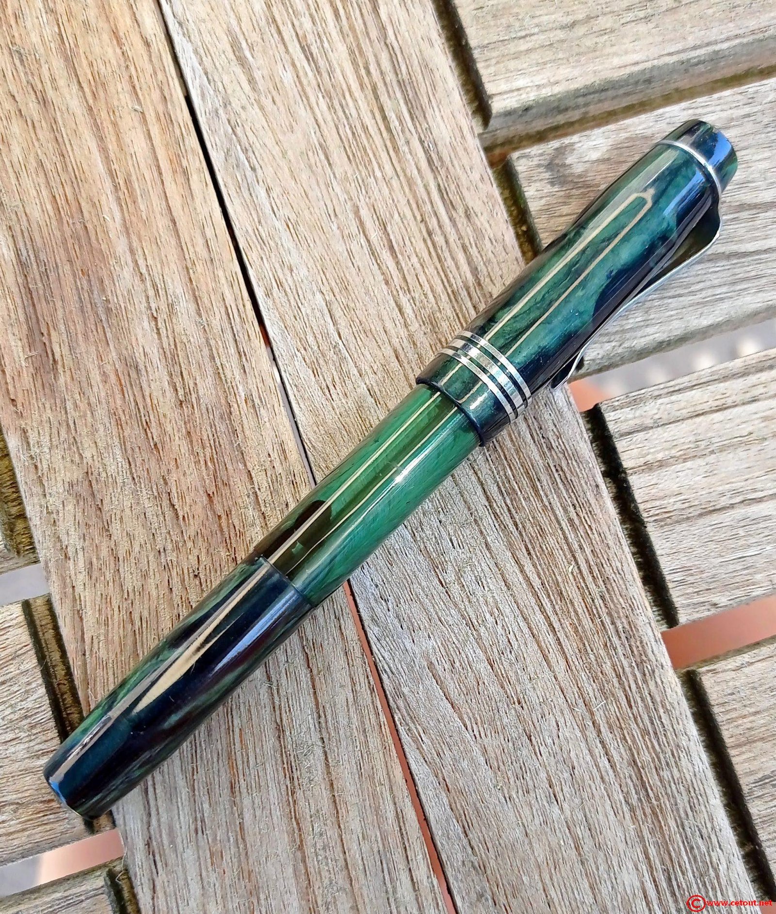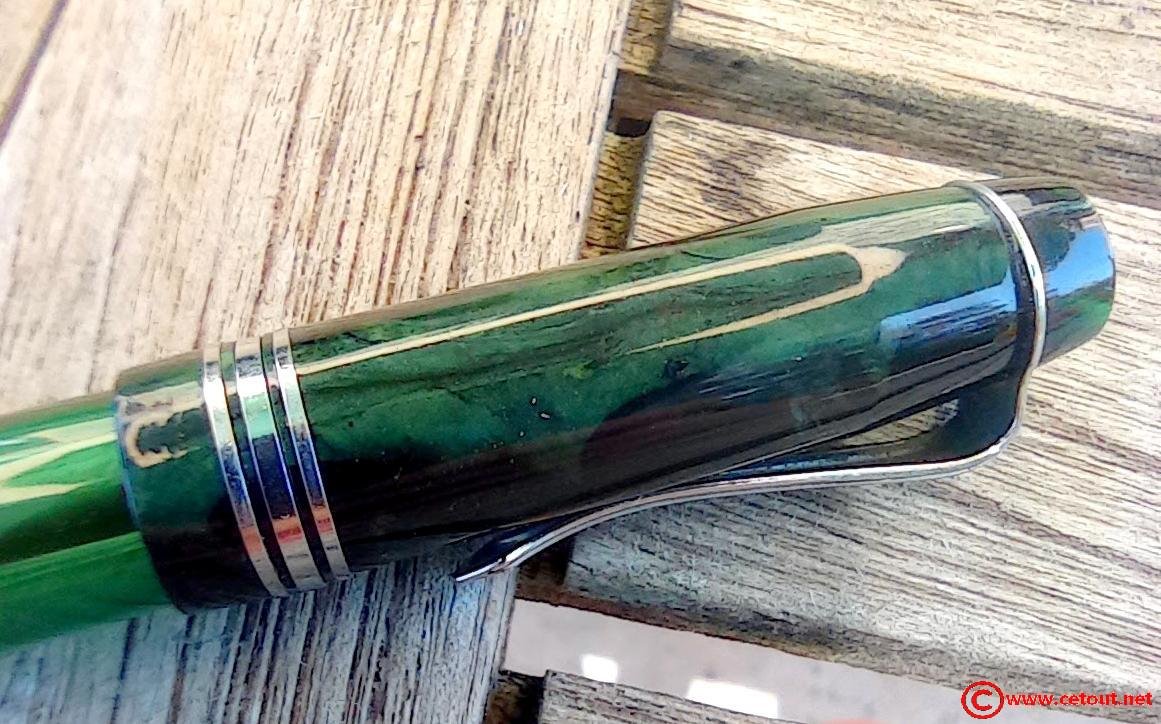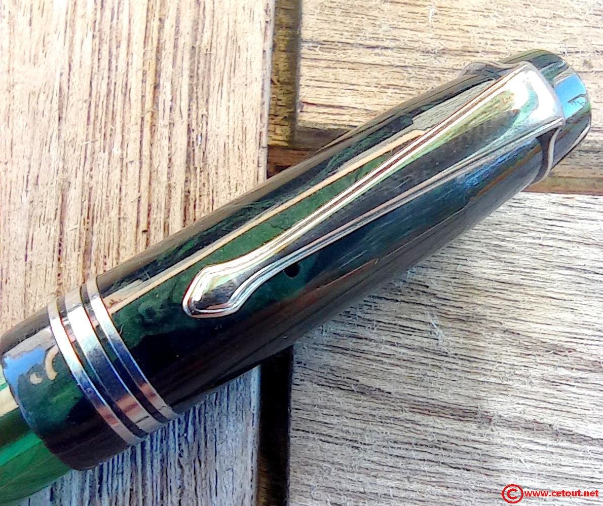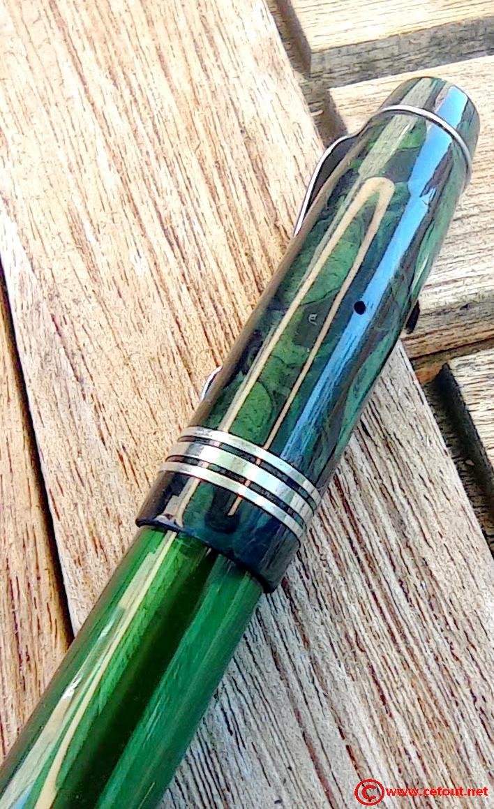 - capuchon marbré vert avec 3 bagues métalliques à la base (Très bon état). Clip métallique.