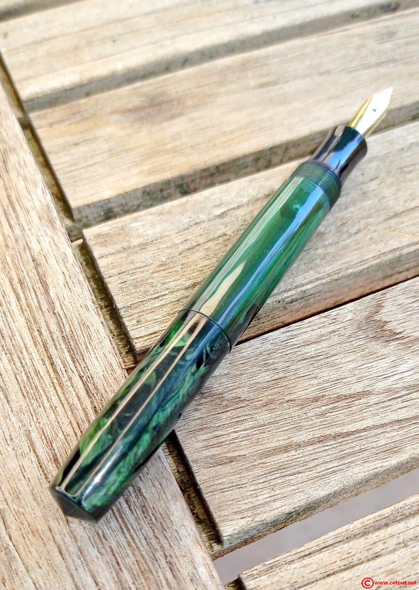 Stylo Plume marbré et transparent Vert.