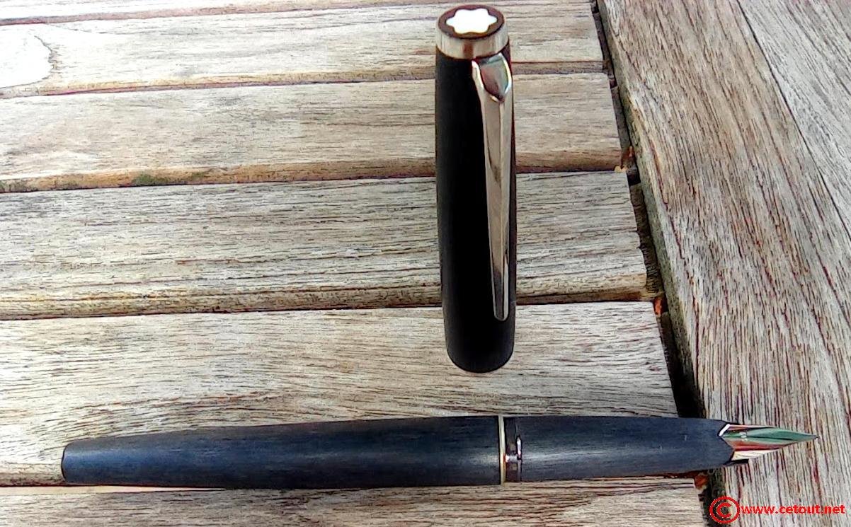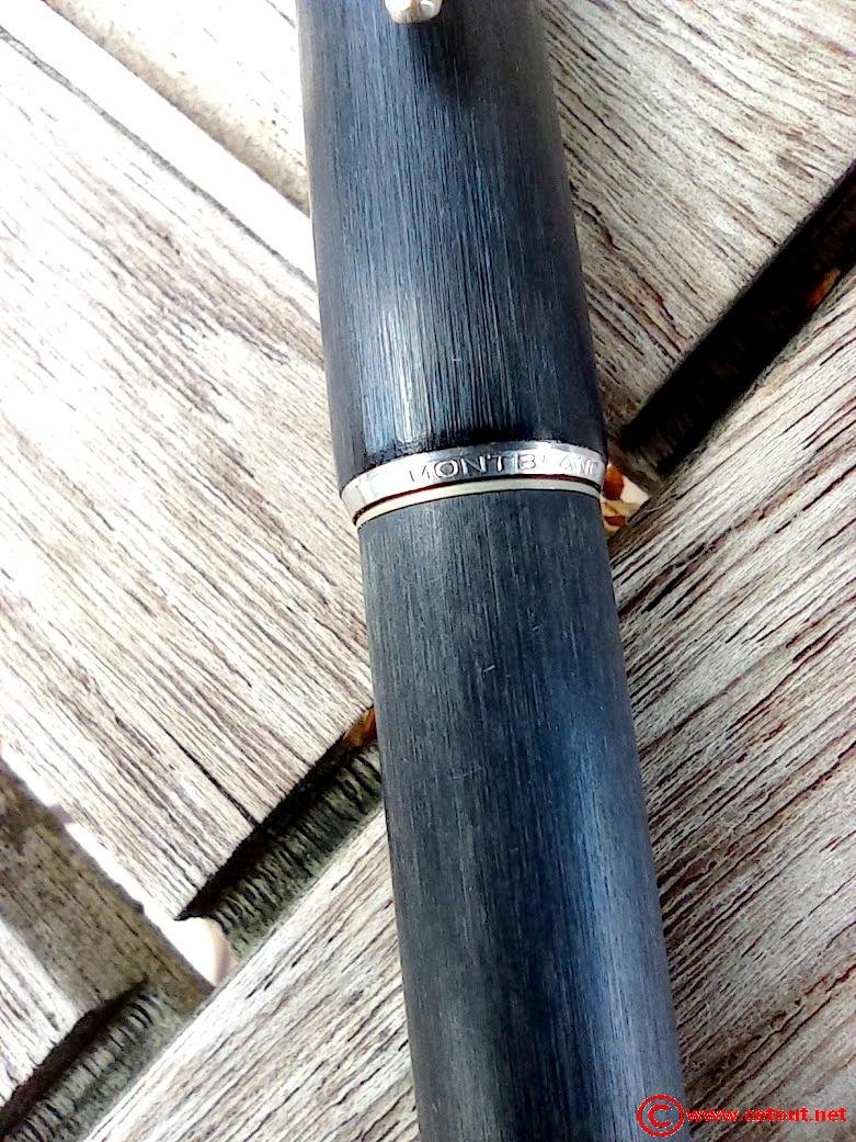 Stylo Plume MONTBLANC 220 noir aspect brossé sur tout le corps et capuchon.