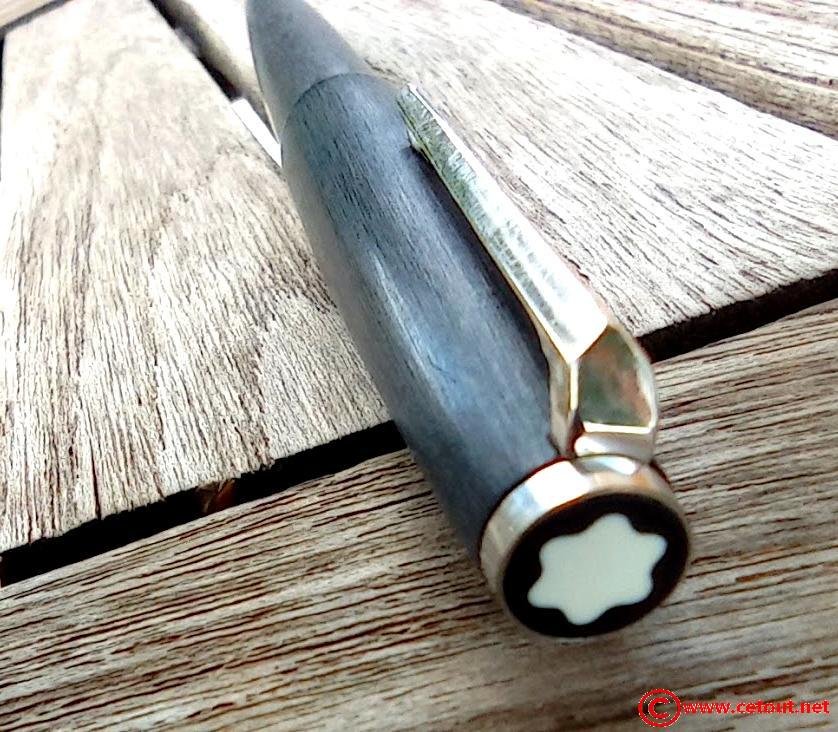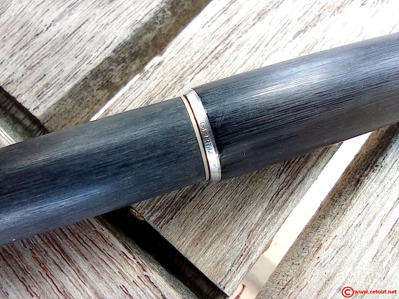 – Capuchon (intact) résine noire brossée avec clip et bague métal argenté (or blanc)?