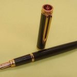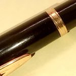 – Capuchon résine laquée noire. Agrafe de capuchon en plaqué or. Une bague dorée au sommet avec Logo W. Une bague dorée à la base du capuchon. Il est gravé : « Plaqué OR G WATERMAN made in France+ poinçon [Wat S.A] »