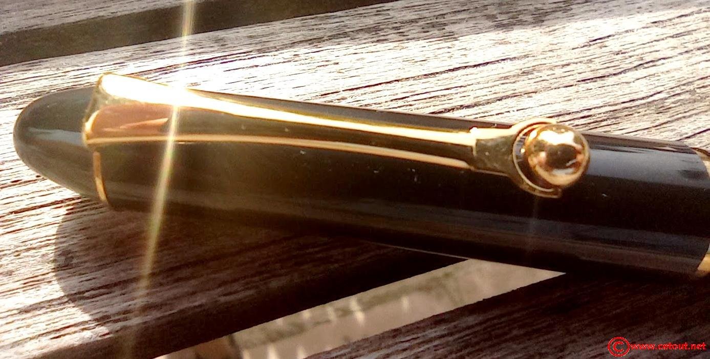 – Corps Celluloïd ou plastique? noir. En 2 parties avec une bague séparative métal doré.