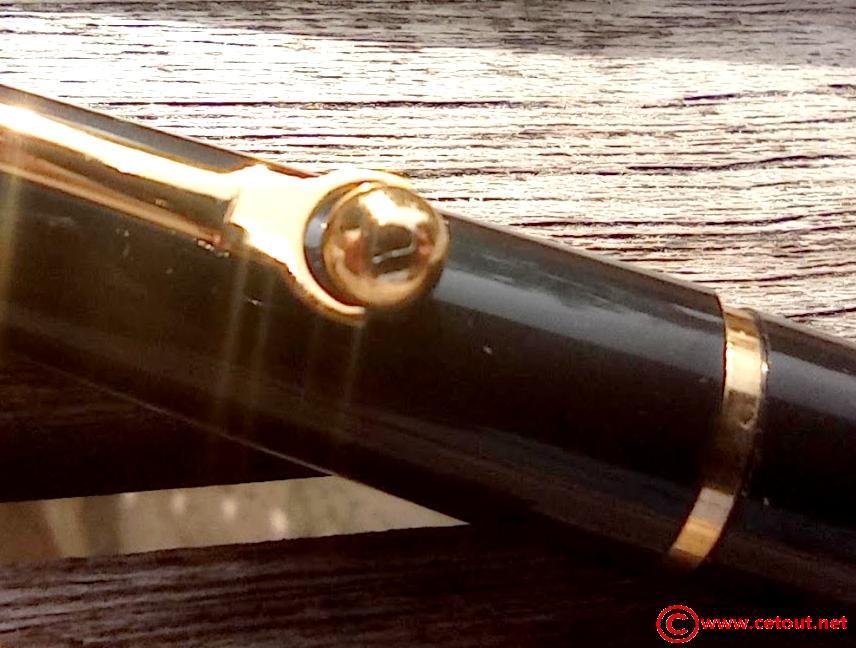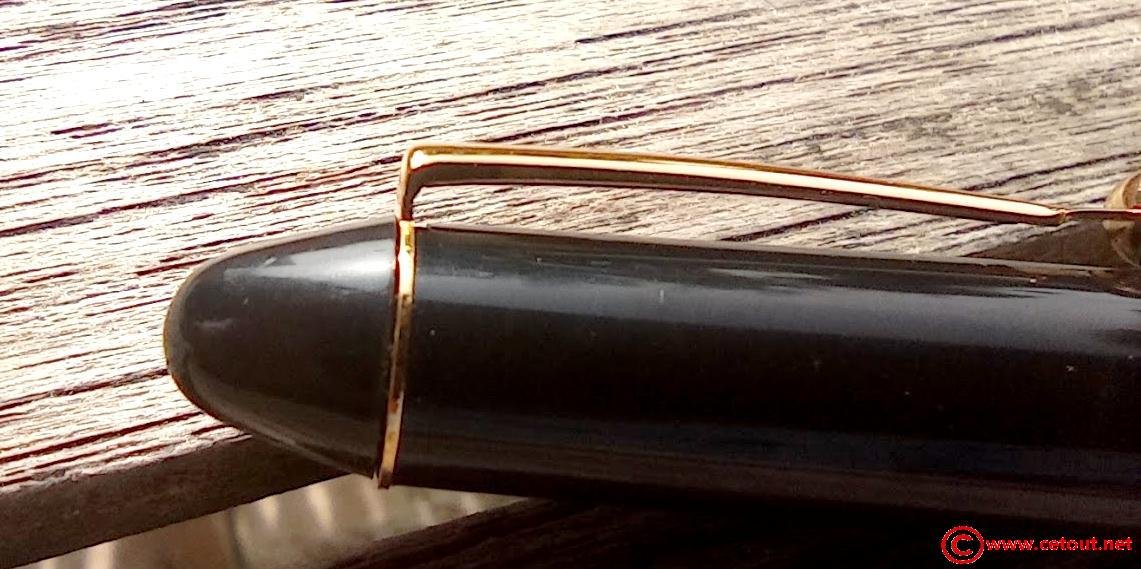 – Capuchon en Celluloïd ou plastique? noir. Clip métal doré avec forme proche de celle de certains OMAS. 1 bague dorée à la base. Très bon état global.