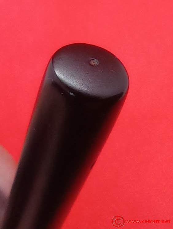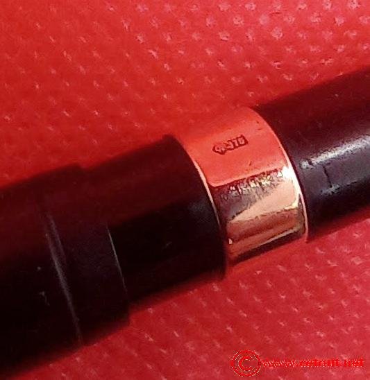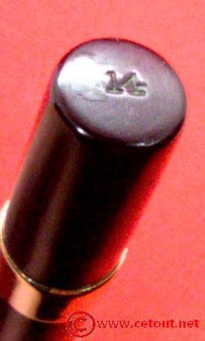 – Corps Ebonite noire. Numéro 14 gravé sur l’extrémité. Il est gravé sur le corps (apparaît seulement à la lumière rasante) :