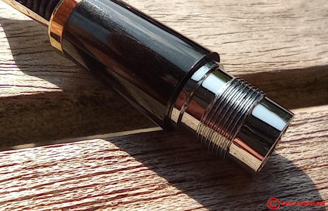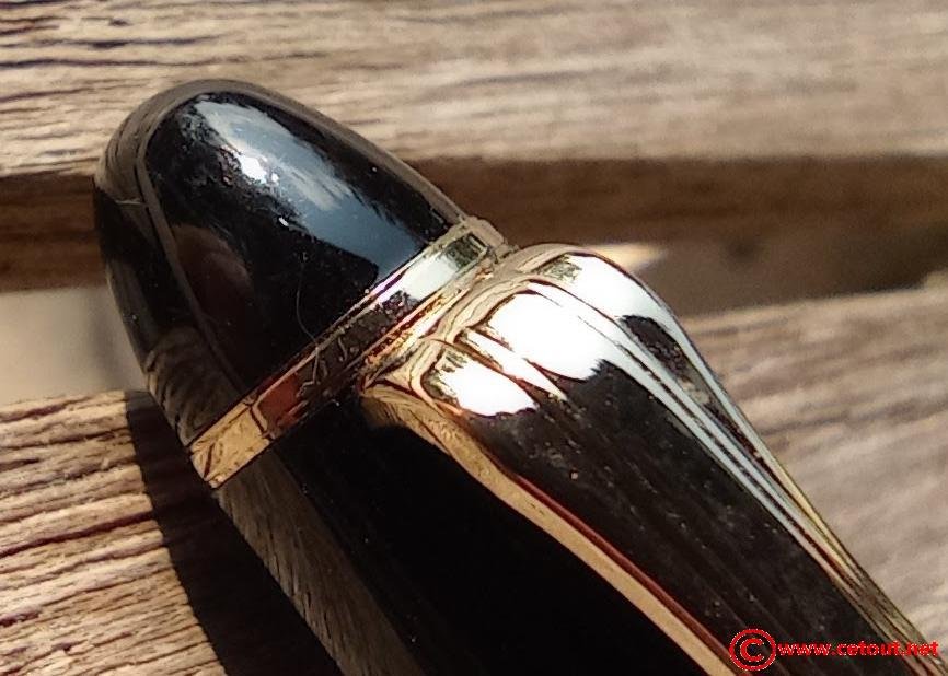- Capuchon (intact) résine noire. Clip doré. Bague dorée à la base du capuchon avec gravure : “SAILOR FUNDED 1911 JAPAN”