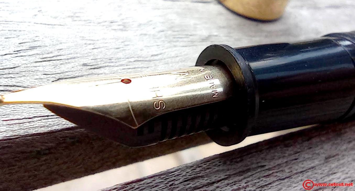 Plume dorée originale SHEAFFER gravée « SHEAFFER ® + poinçon de la marque + F + Made in USA».