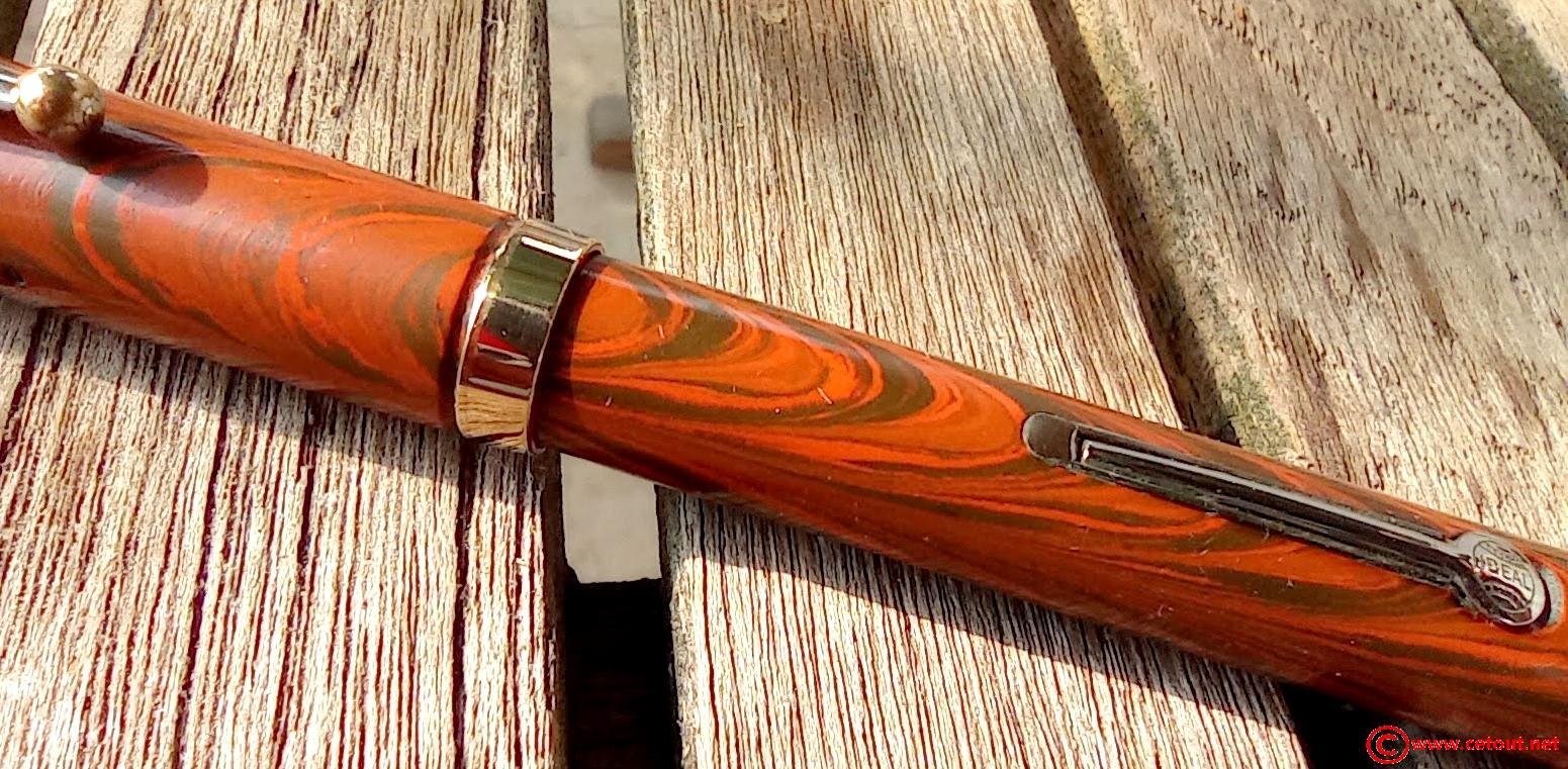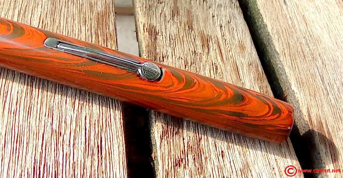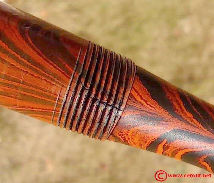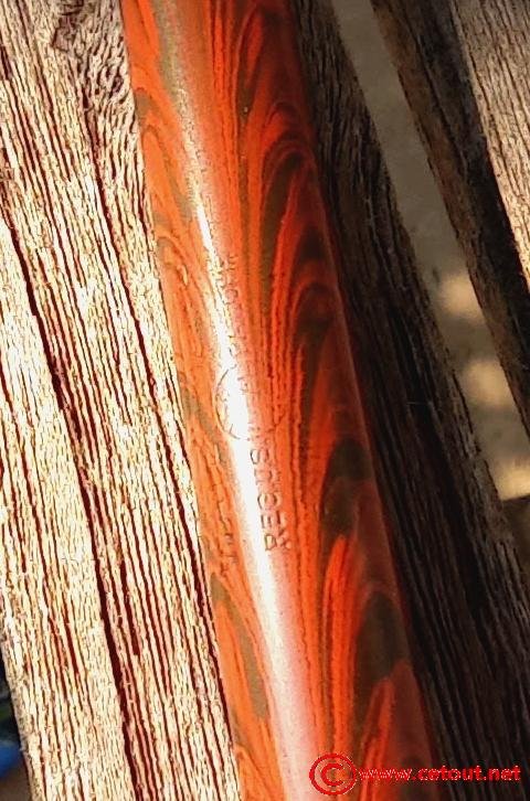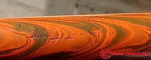 – Corps Ebonite marbrée rouge et noir (RED RIPPLE). Numéro 52 gravé sur l’extrémité. Il est gravé sur le corps :