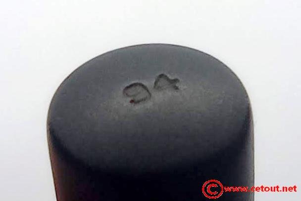 – Corps Ebonite noir. Numéro 94 gravé sur l’extrémité. A noter : un coup sur le corps (extrémité). . Il est gravé sur le corps (quasiment effacé):