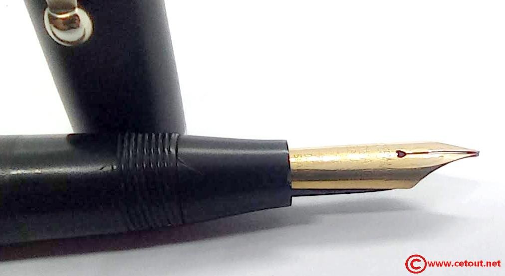 – Bloc plume Ebonite noir. Plume WATERMAN avec comme inscription :