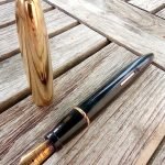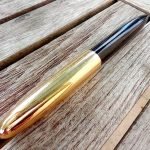 – Corps Celluloïd(?) Noir. Il est gravé dans la matière: « METEORE 339» stylisé. Une bague dorée sépare le bloc plume du corps et sert de clip pour la fermeture du capuchon.