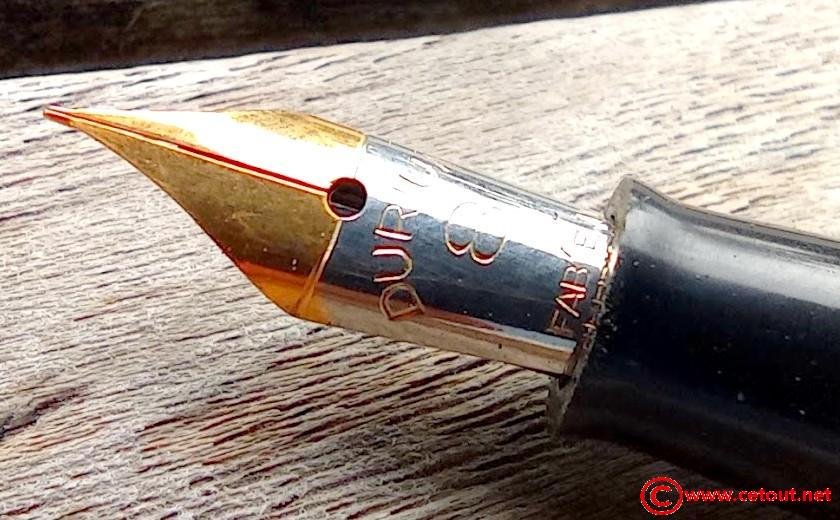 Bloc section CELLULOID ou EBONITE? Noire . Plume bi-métal gravée “DURIUM 8 fabriqué en France”.