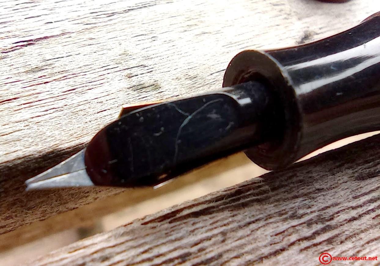 Bloc section CELLULOID ou EBONITE? Noire. Plume Métal gravée “ALWAR 8 C.V.F France”.