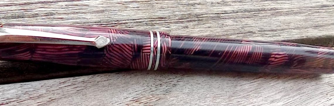 INCONNU : Stylo plume motifs zébrés rouge et noir