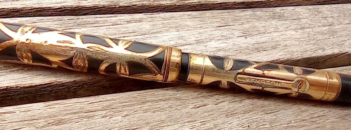 DANS SON JUS : Stylo KEYSTONE Filigree noir et doré probablement des années 20-30