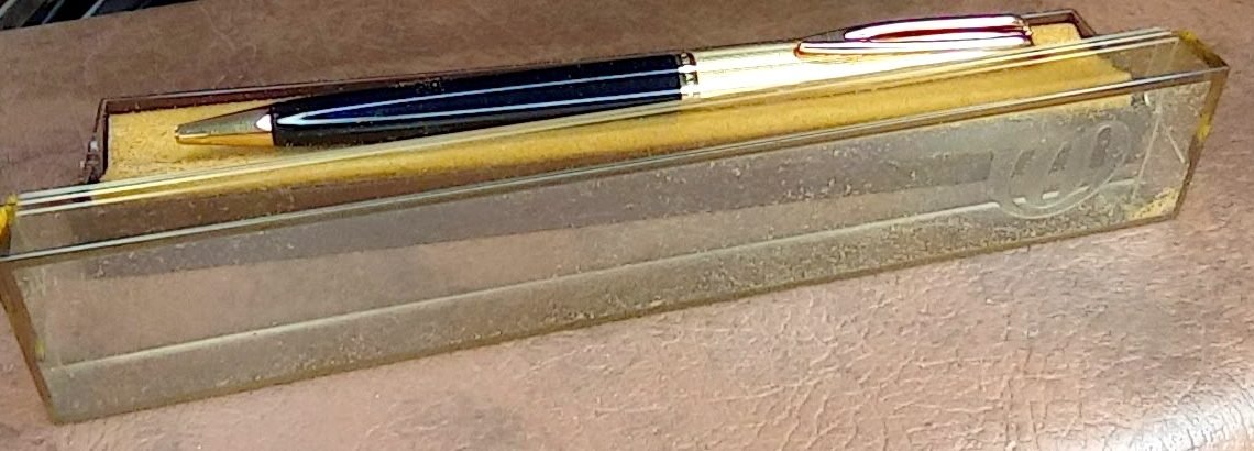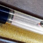 – Capuchon en métal doré strié avec poinçon. Clip doré spécifique Waterman C/F. Inscription gravée à la base : « WATERMAN C/F plaqué OR G + poinçon ».