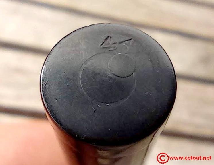 – Corps Ebonite noir . Numéro 44 gravé sur l’extrémité. Il est gravé sur le corps :