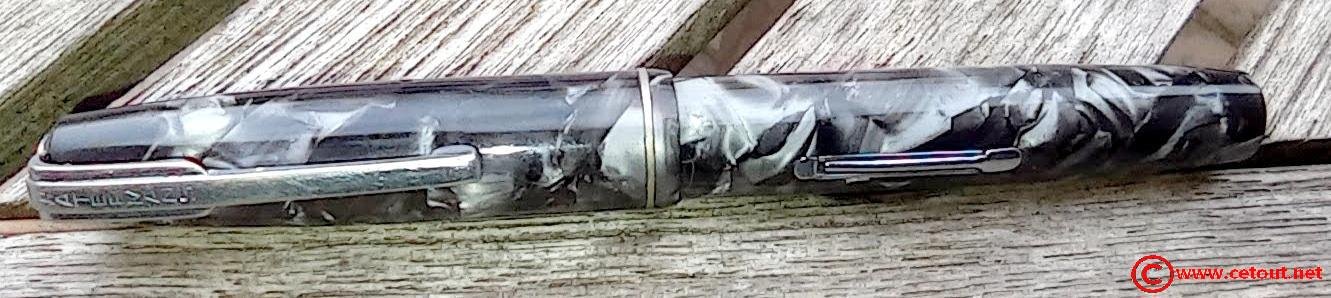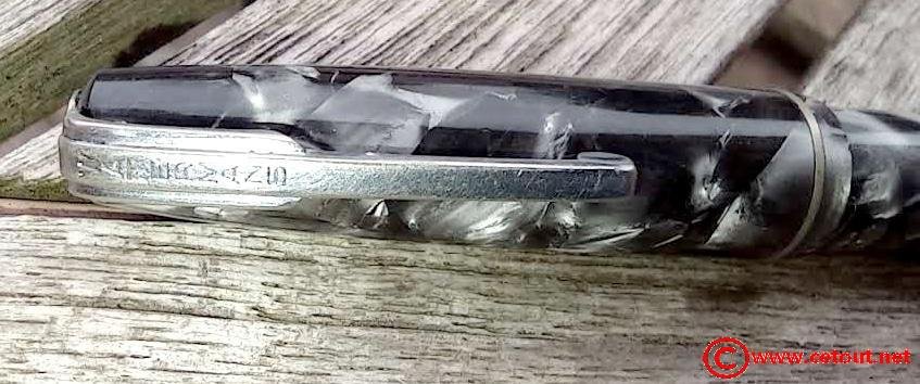– Corps Celluloïd marbré Vert-Gris. Il est gravé dans la résine :