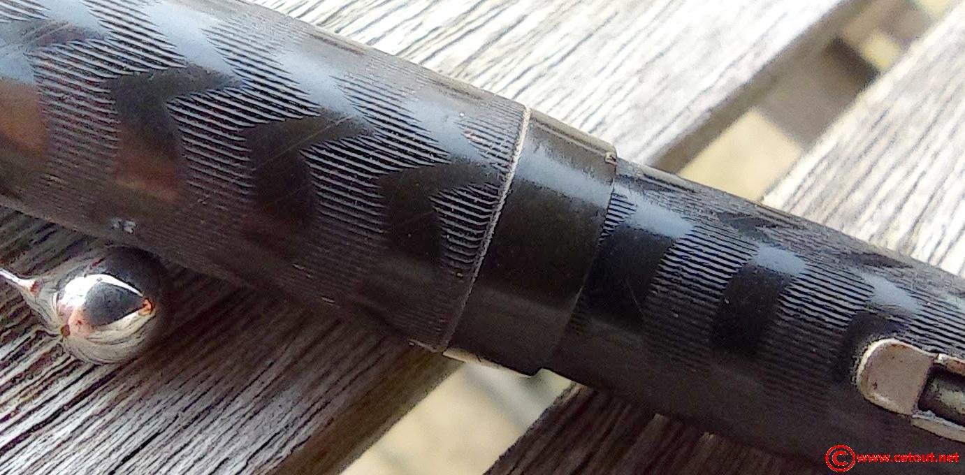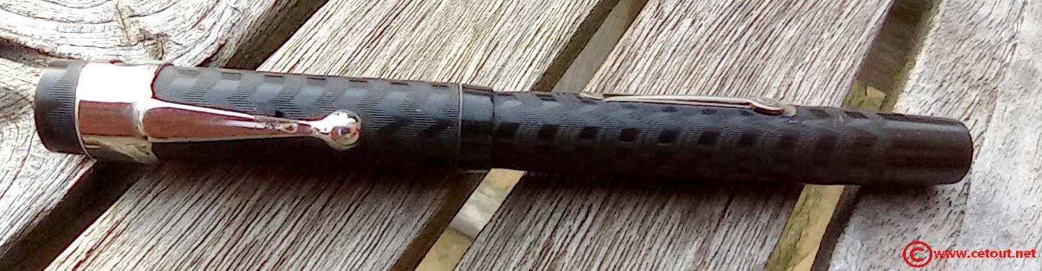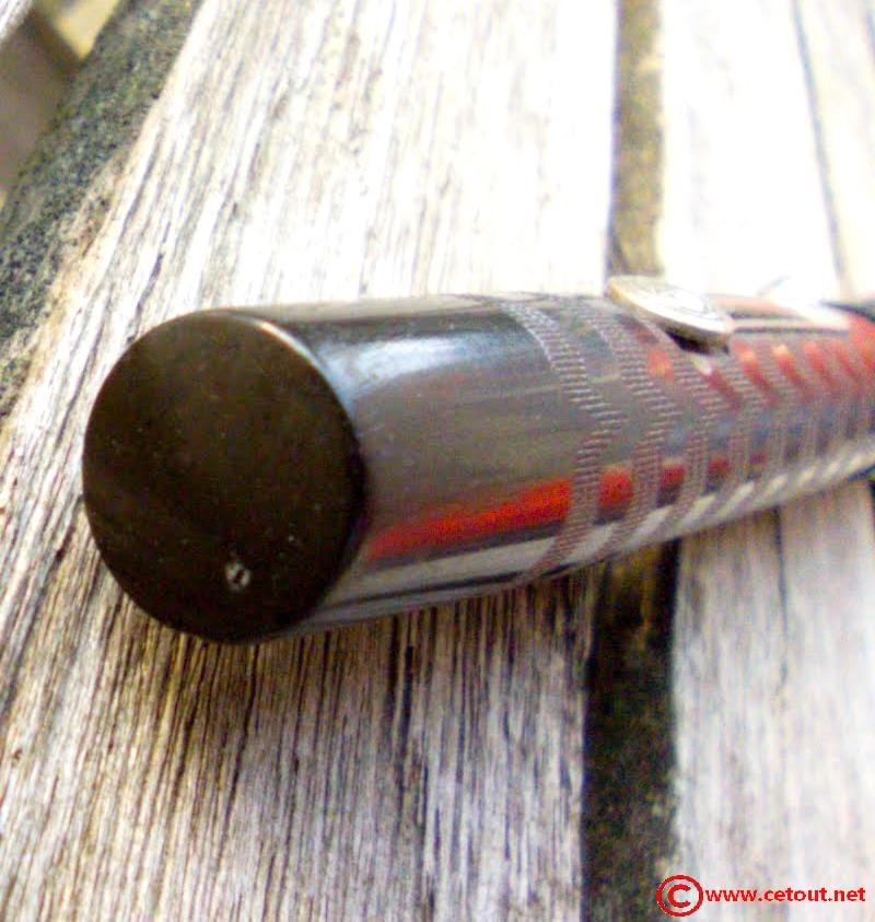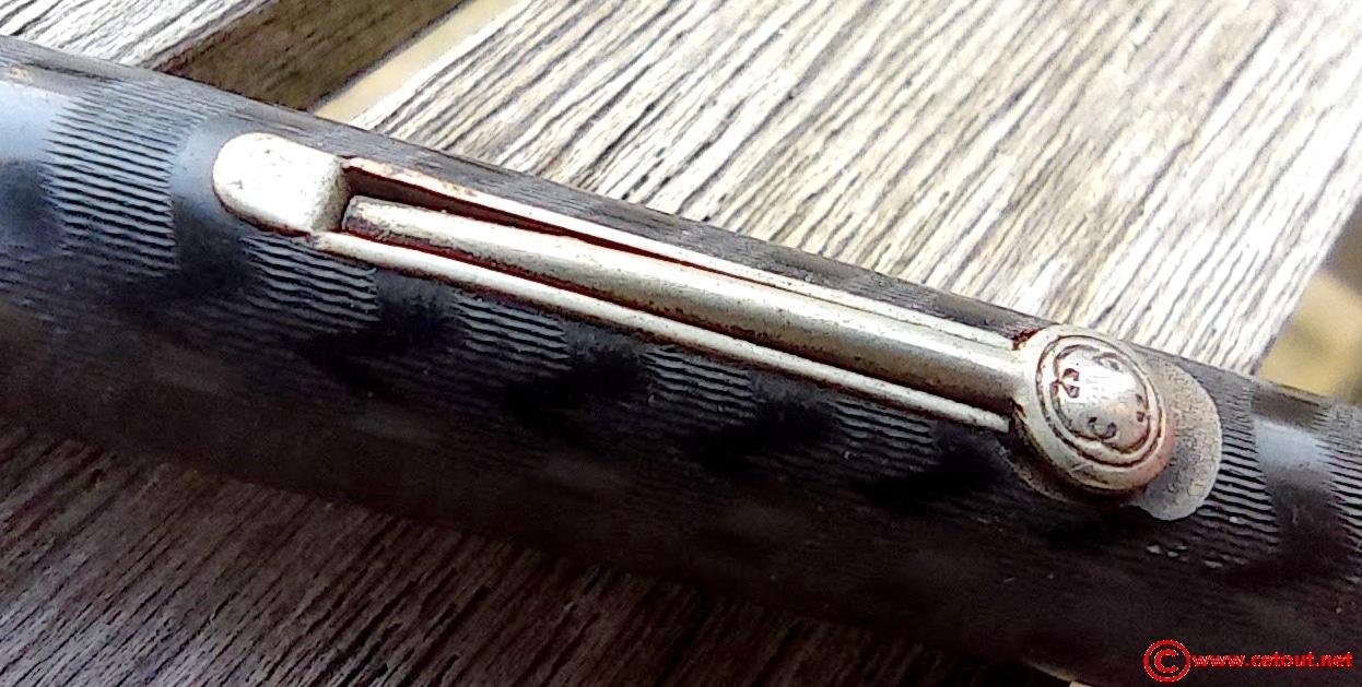 – Capuchon en Ebonite noire. Clip métal brillant (petite trace d’oxydation). Bon état global.