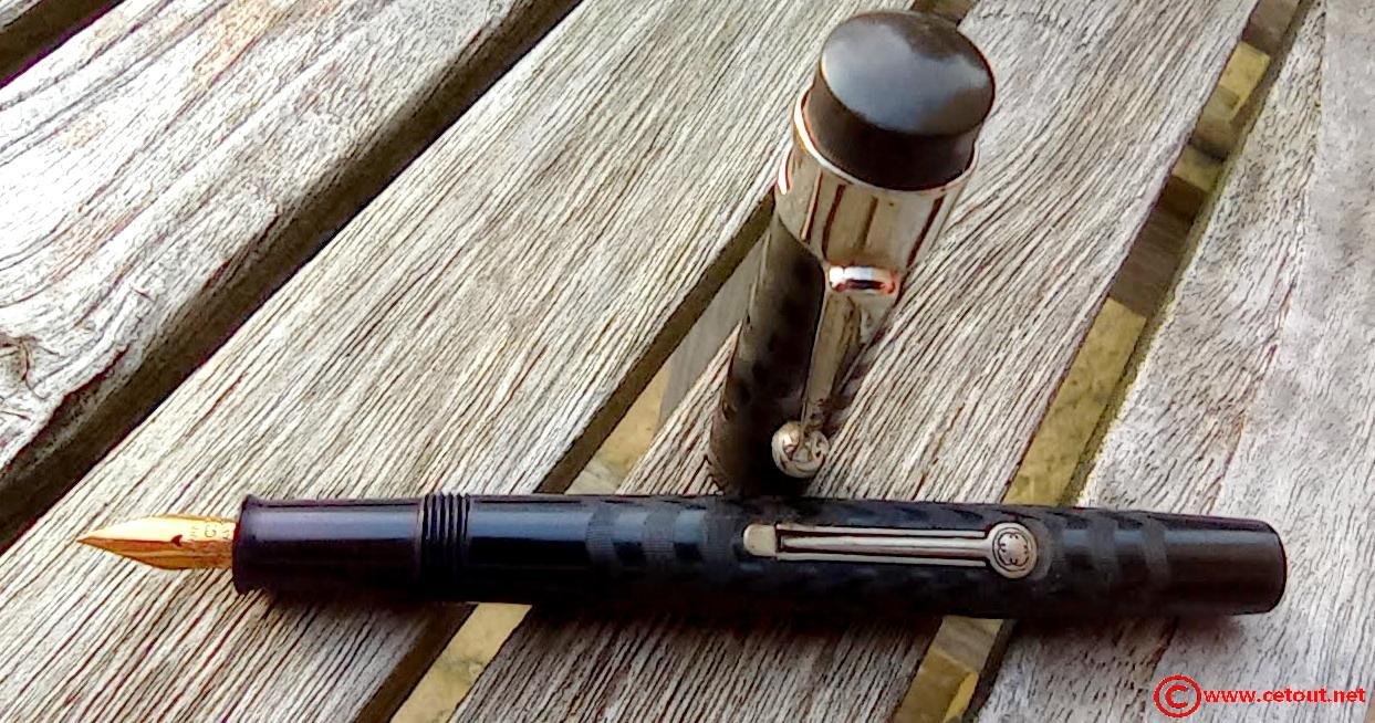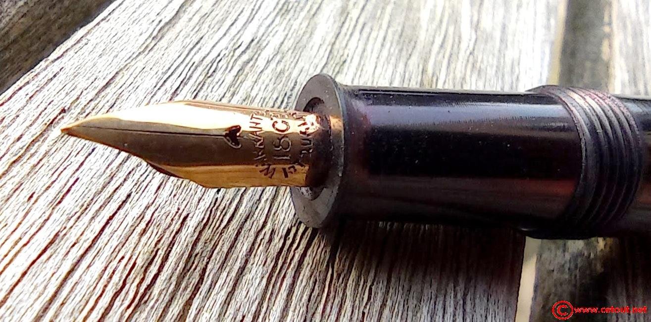 – Bloc Plume Ebonite noire. Plume or avec inscriptions :