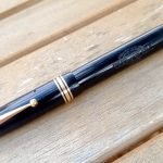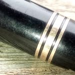 – Capuchon (intact) Celluloïd noir avec clip et bagues dorées. Clip avec logo gravé de la marque SWAN (Cygne).