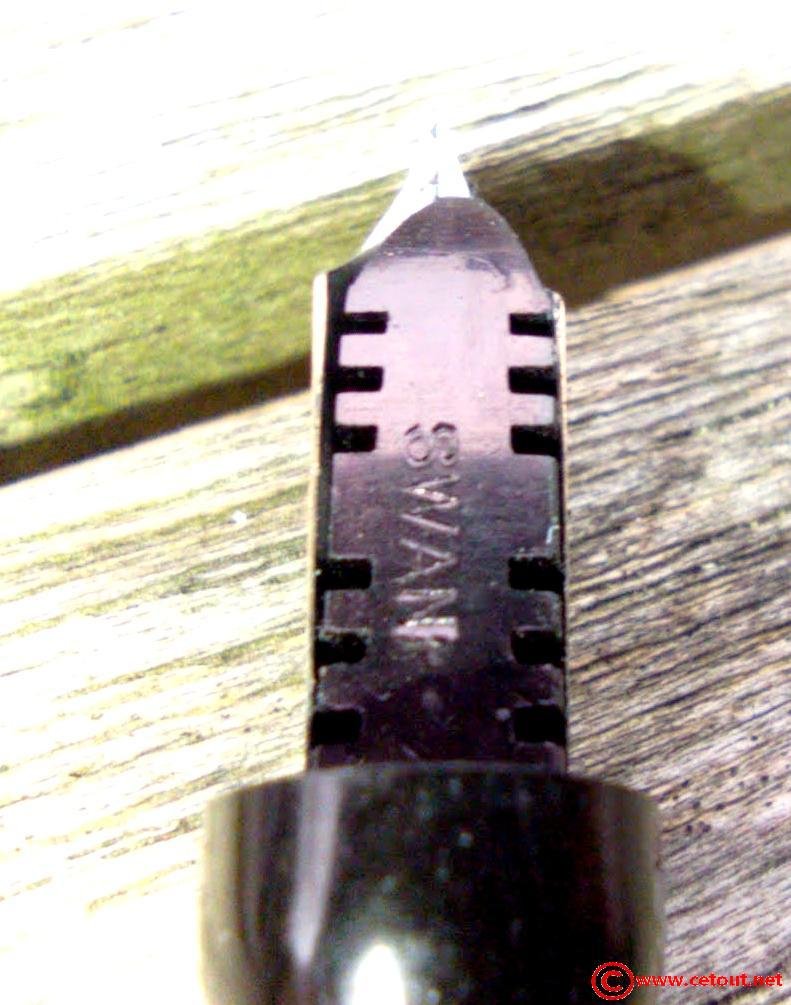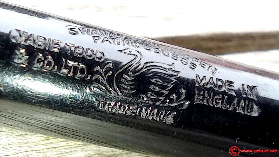 – Corps Celluloïd Noir. L’inscription est : Logo MARQUE (dessin du cygne avec « TRADE MARK » en dessous puis suivi à droite de :