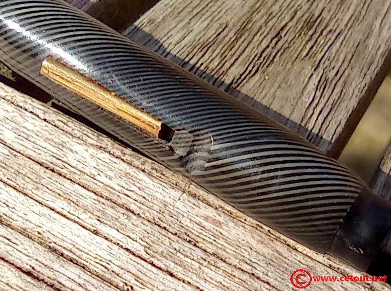 – Capuchon en celluloïd? noire avec motifs zébrés. Très Bon état global.