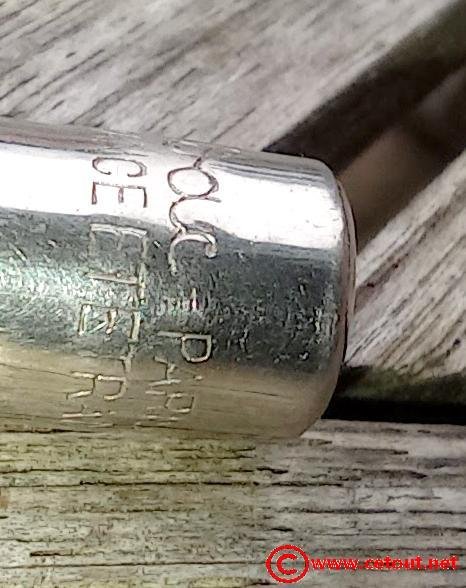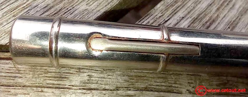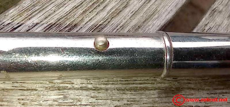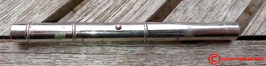 – Corps métal . Un bouton a été ajouté pour fluidifier l’encre dans le sac. Système à levier.