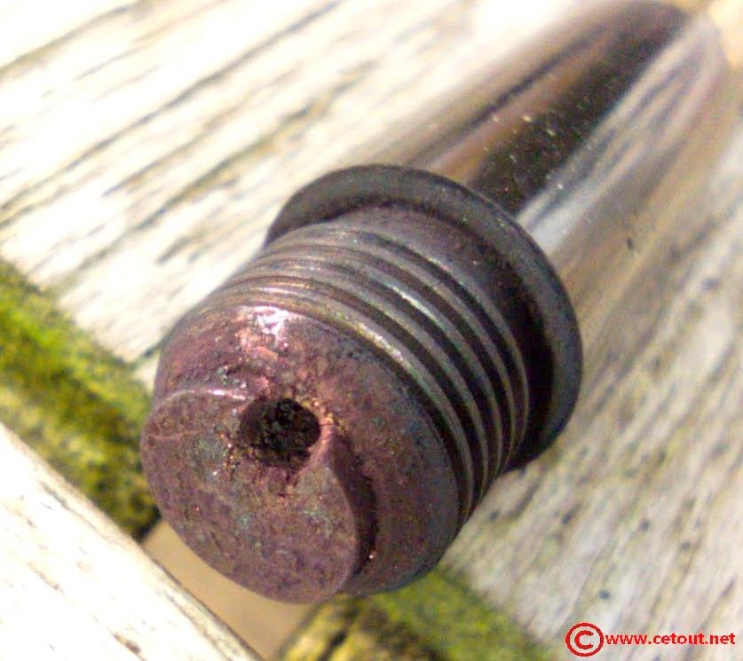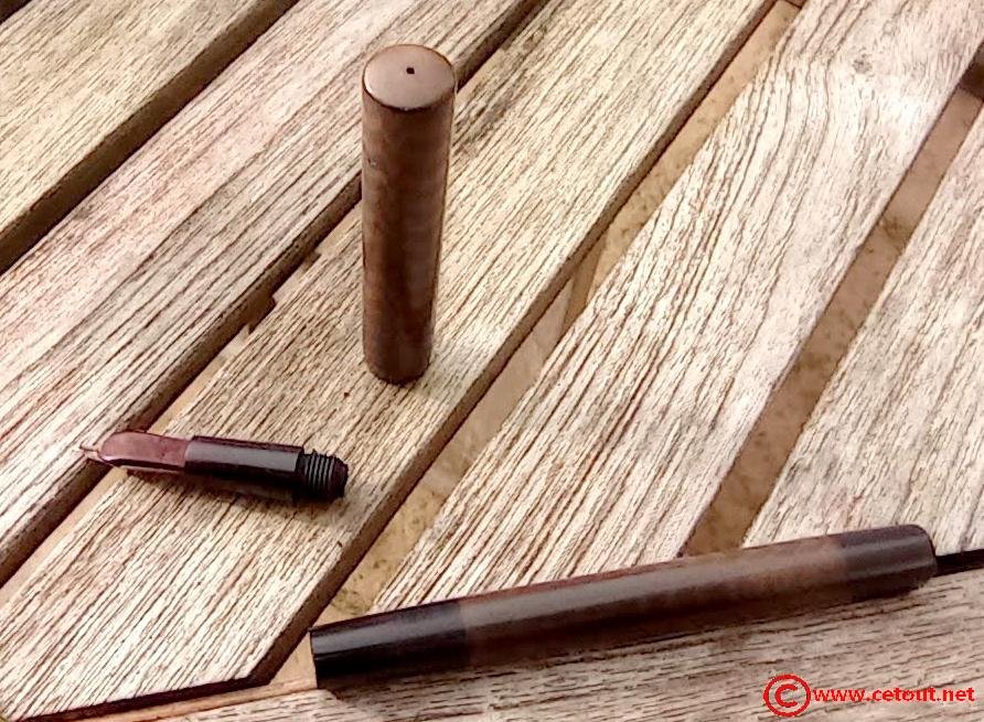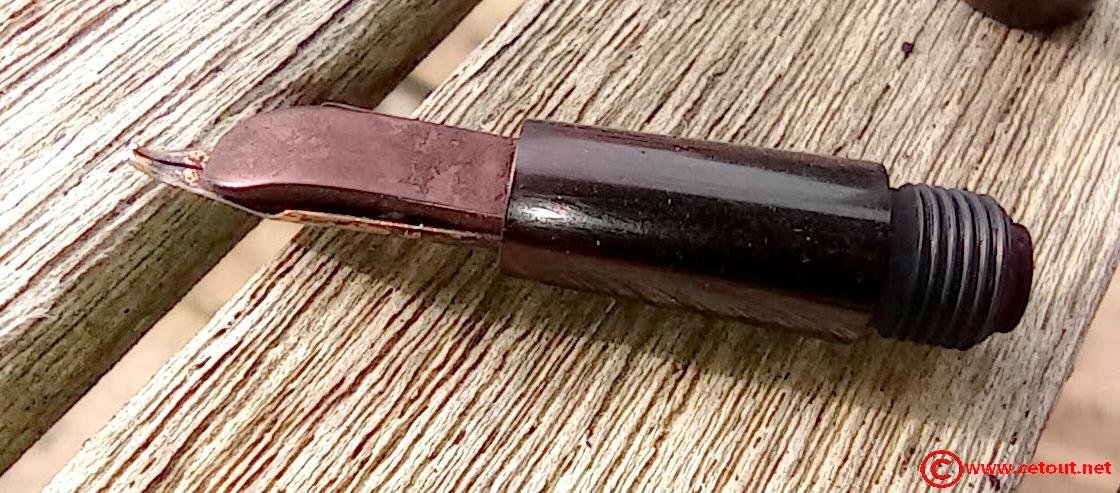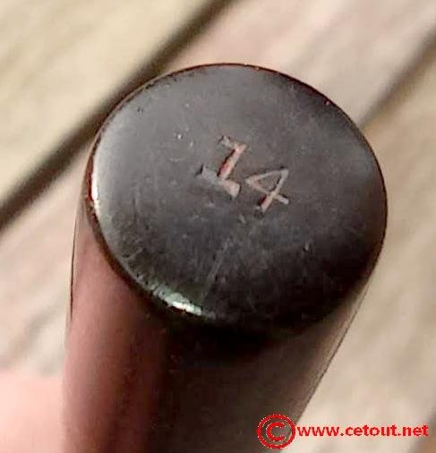– Corps Ebonite noire. Matière décolorée. Numéro 14 gravé sur l’extrémité. Il est gravé sur le corps :