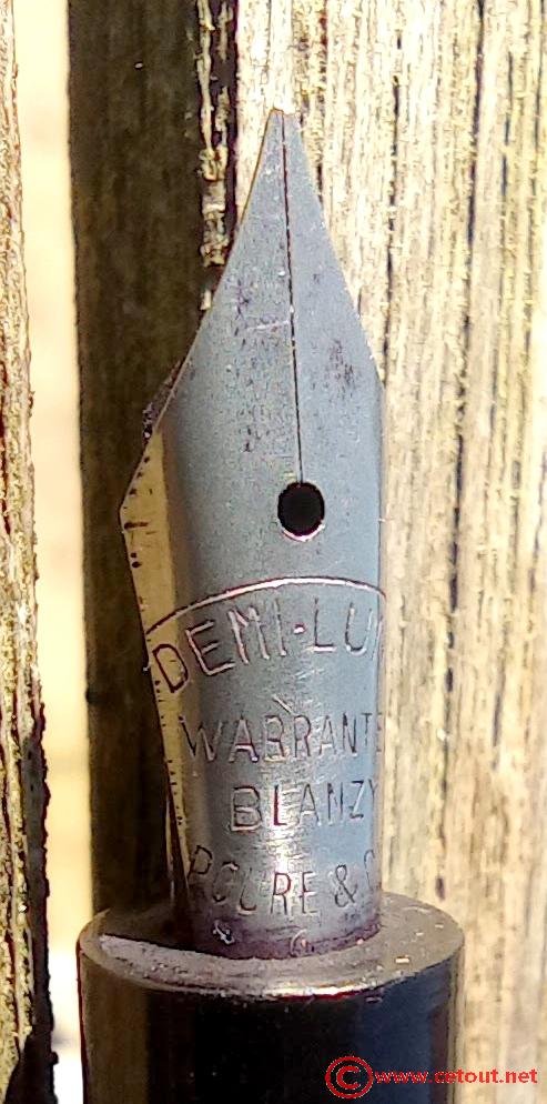 - Plume dorée gravée “DEMI-LUNE WARRANTED BLANZY POURRE&CIE” + numéro caché