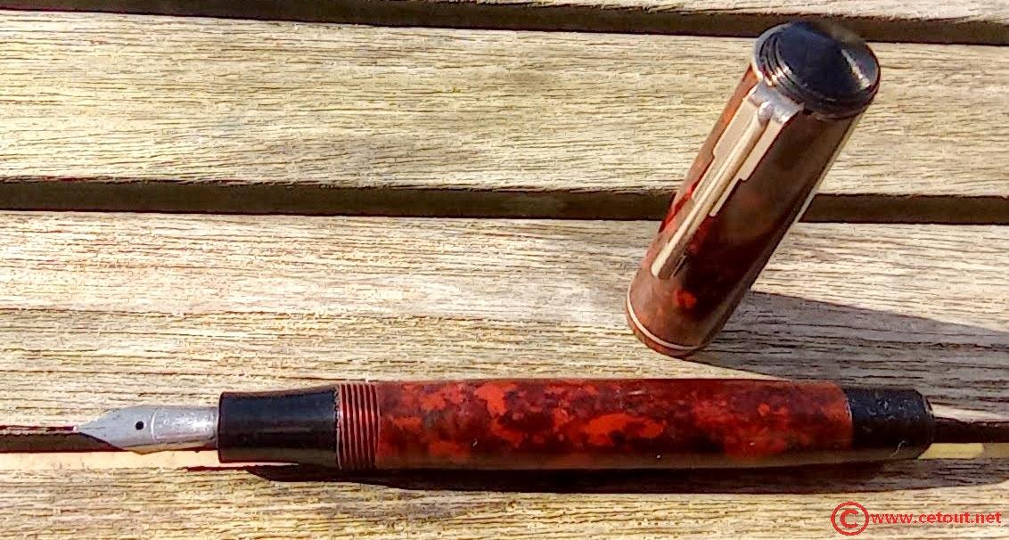 [DANS SON JUS]Stylo Plume INCONNU marbré façon bakelite.