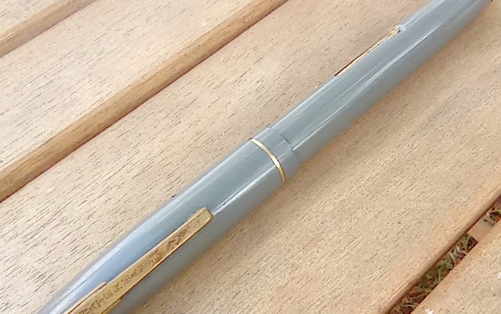 – Bloc plume Celluloïd uni Gris-Vert. Plume OR WATERMAN avec comme inscription :