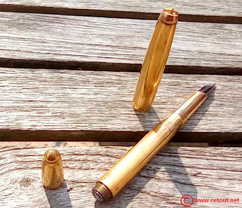 STYLO EDACOTO PARIS en métal doré – Mécanisme à bouton.