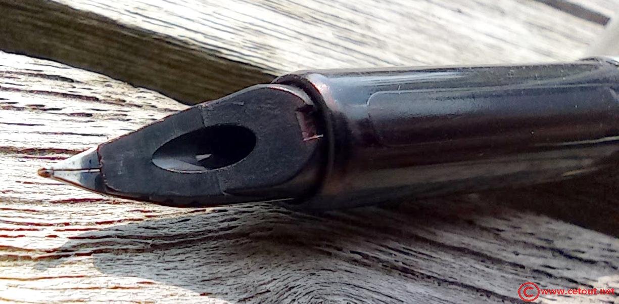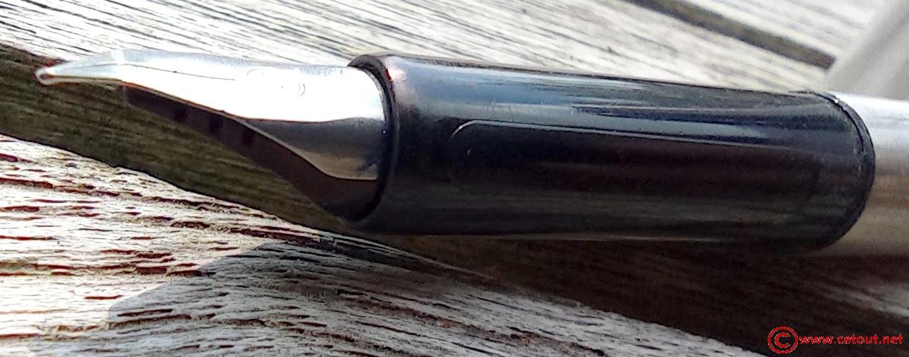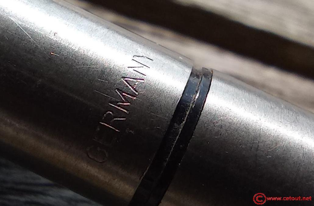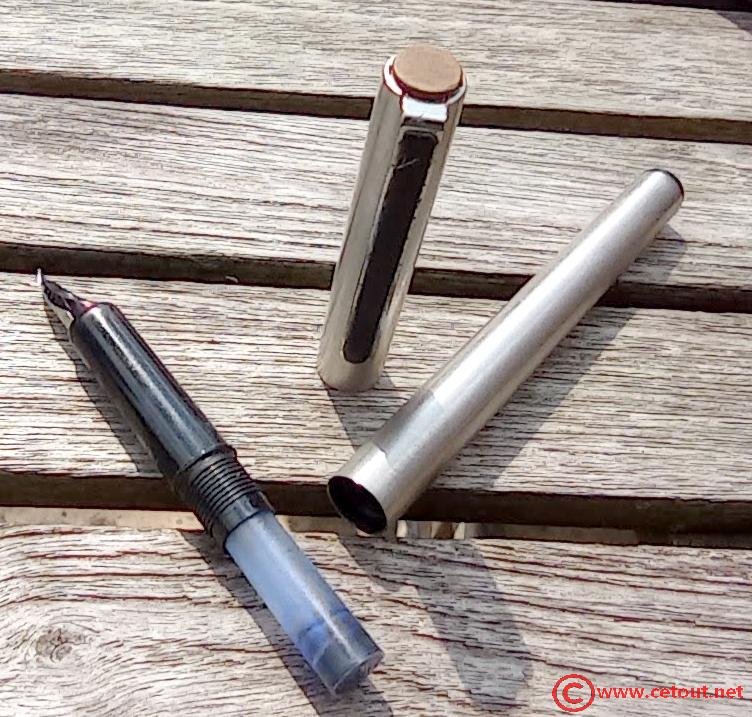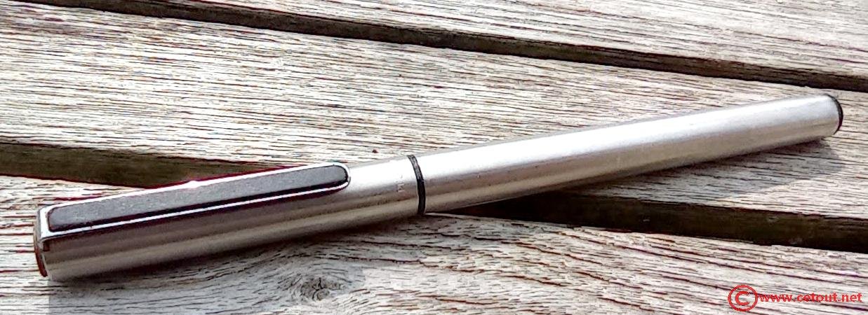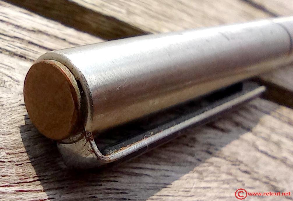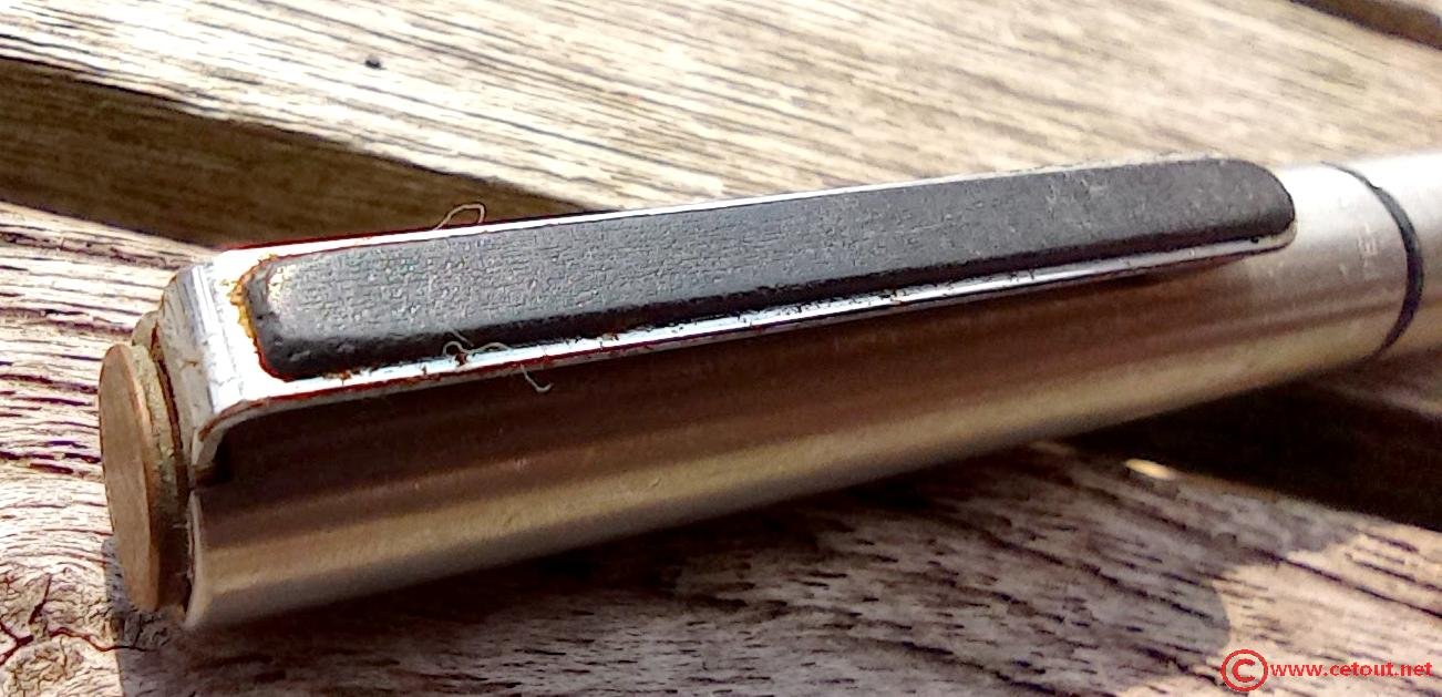 – Capuchon (intact) : Métal brossé – Agrafemétal avec partie plastique noire sur la longueur. Sommet en métal doré. Inscriptions PELIKAN et GERMANY à la base.