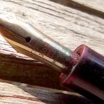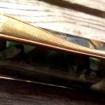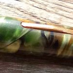 – Capuchon en celluloïd? marbrée (Marbré Vert Marron Nacre). Clip décoré en laiton (?). Bon état global.