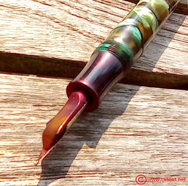DANS SON JUS : STYLO PLUME SEMPER Marbré Vert Marron Nacre- MADE IN FRANCE