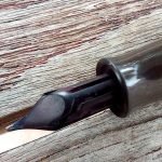 Il s’agit ici d’un modèle Dubonnet Red Demi avec un capuchon en celluloïd striée couleur miel.
