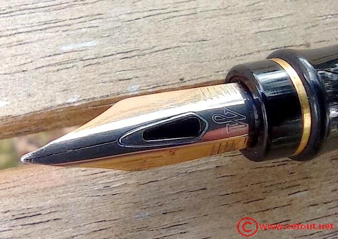 – Bloc plume en plastique noir. Plume métal. Inscription (logo)